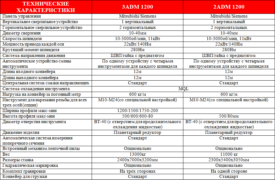 СТАНДАРТНЫЕ ХАРАКТЕРИСТИКИ ТРЕХШПИНДЕЛЬНОЙ СВЕРЛИЛЬНОЙ ЛИНИИ 3ADM: