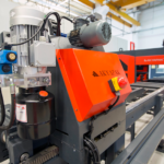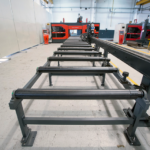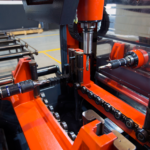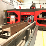 Процесс выглядит следующим образом: материал для сверления (двутавр, уголок и пр. профиль) помещается на подающий конвейер. Заготовка, удерживаемая подающим устройством, перемещается в участок сверления, а лазерная система выставляет автоматически задает ему начальную позицию.