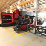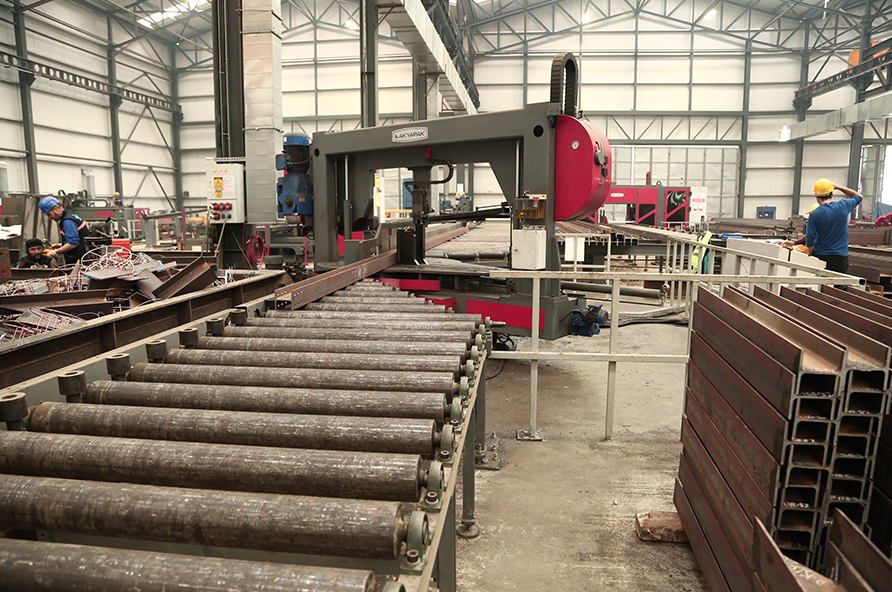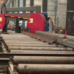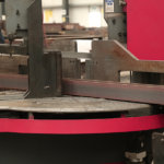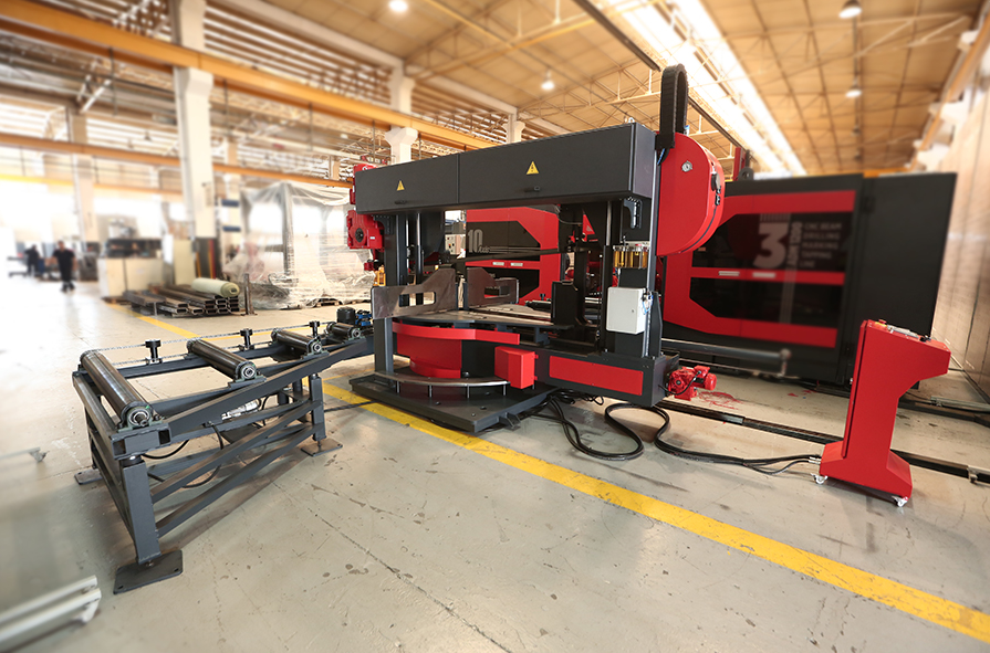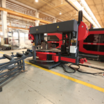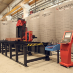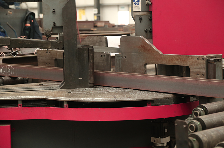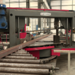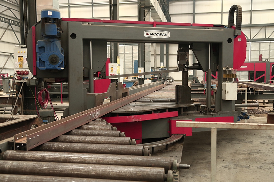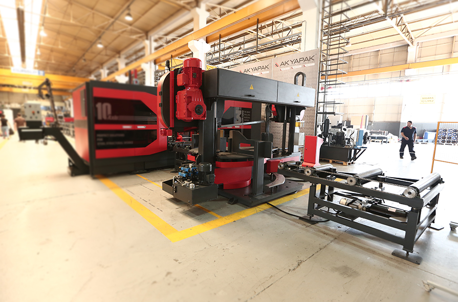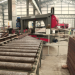 Угловое положение резки регулируется серводвигателем (приводится в исходное положение). Может быть скорректирована скорость резки и ее прогресс в зависимости от материала. Скорость резки=скорость ленты. Ход резки=вертикальное движение ручной пилы. *Чтобы обеспечить легкое вращение корпуса, когда материал находится в ленточной пиле, он поднимается на 10мм гидравлическими платформами, расположенными на входе и выходе плиты.