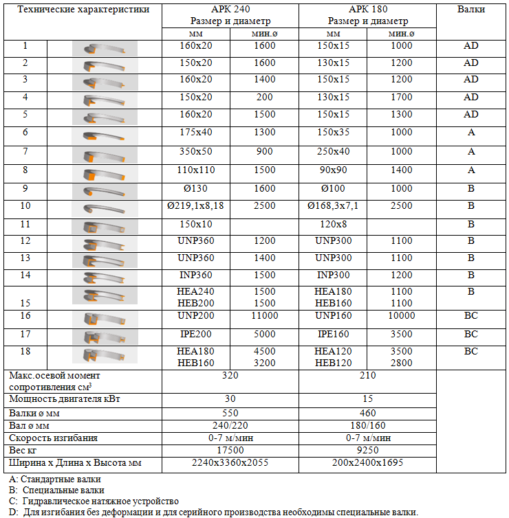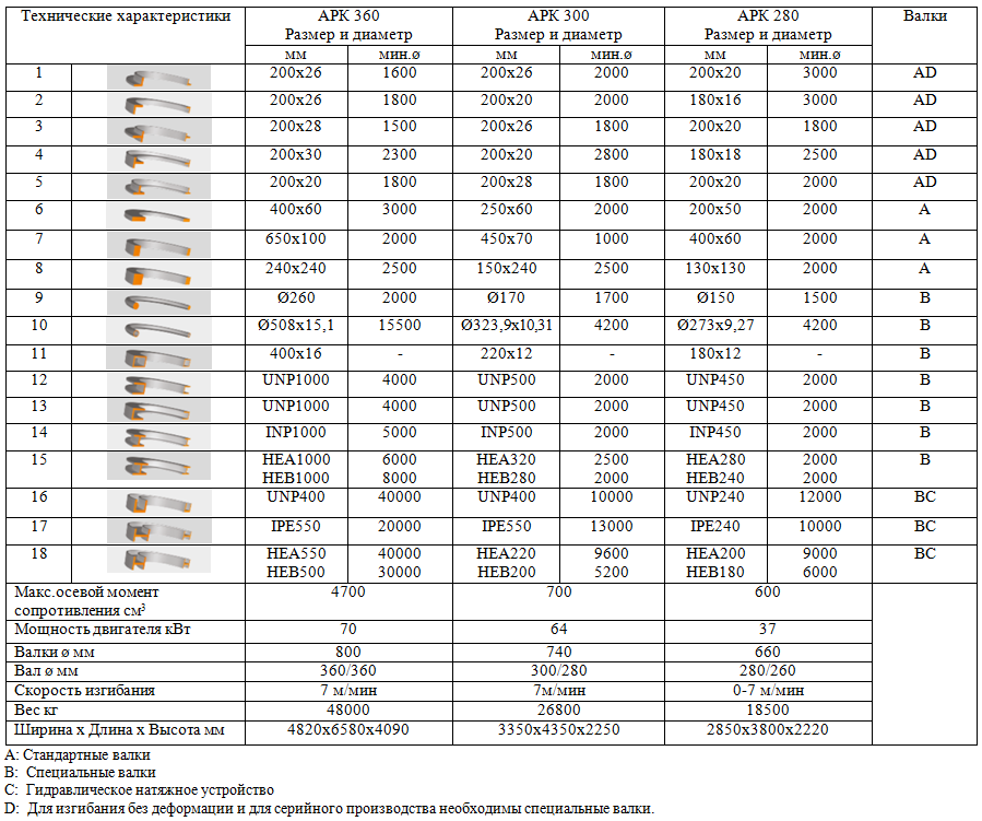 СТАНДАРТНЫЕ ХАРАКТЕРИСТИКИ ПРОФИЛЕГИБОЧНОГО СТАНКА МАЛОЙ МОЩНОСТИ АРК 30, 35: