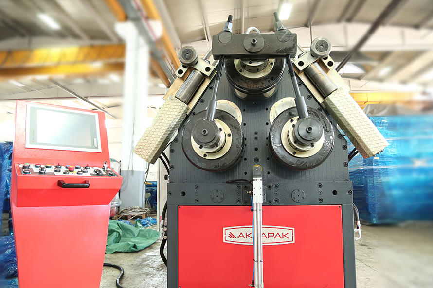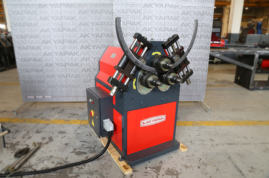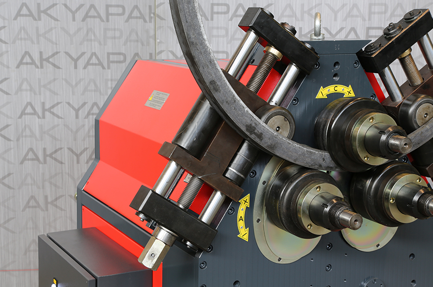 Все 3 ролика профилегибочного станка AKYAPAK являются приводными. Благодаря этому, во-первых, в процессе гибки исключается возможность выскальзывания материала в процессе обработки за счет того, что каждый ролик может двигаться независимо. Во-вторых, это увеличивает выходную мощность всего станка.
