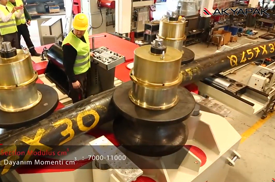 AKYAPAK предлагает широкий выбор профилегибочных машин большой мощности. Прочность и надежность стального сварного корпуса St-52 совместно с увеличенным диаметром роликов обеспечивает меньшую деформацию профиля при обработке, а благодаря используемым подшипникам можно получить долговечность службы и высокий показатель осевого момента сопротивления для гибки более крупных профилей.