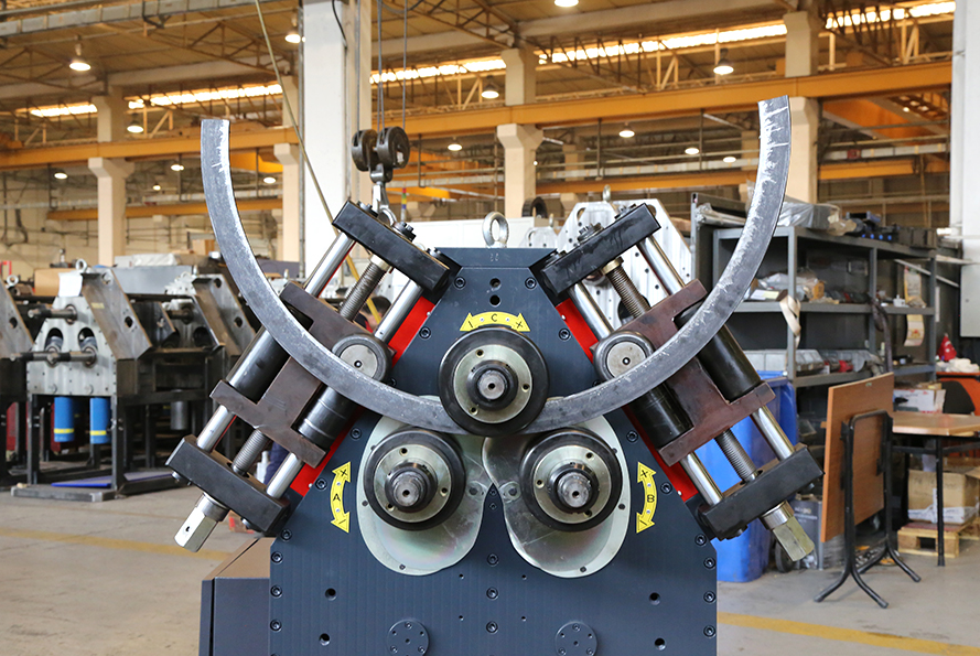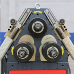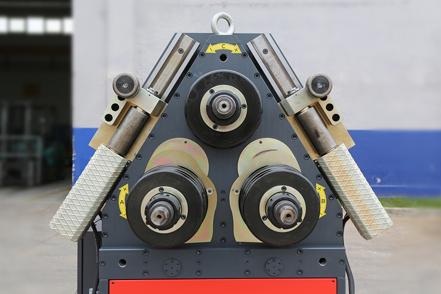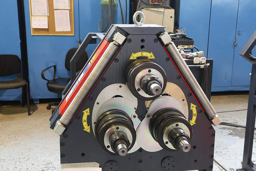 Мощность гидравлических цилиндров позволяет без затруднений гнуть большие детали, а практичные, универсальные ролики создают возможность легкости сгибания различных секций.