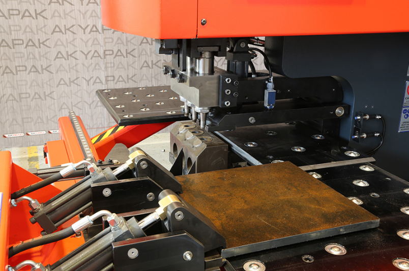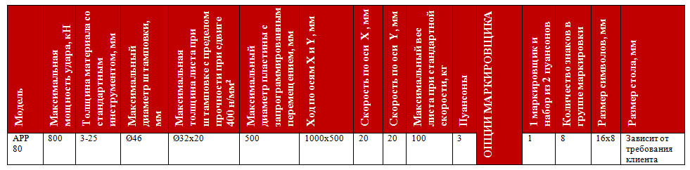 Для модели APP 80 позиционирование листа в автоматическом режиме ограничено размером 1000х500 и весом 100 кг. Если лист фиксируется без смены положения пробивной установки, возможна обработка 1000х500мм и листа в 250кг.