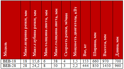 - ВЕВ — портативный станок для снятия фаски с электрическим приводом. Он используется для снятия фаски с краев различного листового металла, как правило, с целью подготовки для дальнейшей сварки. Спроектирован для работы одного оператора и способен снимать фаску с прямого листа металла или круглых пластин со скоростью примерно 4м/мин.