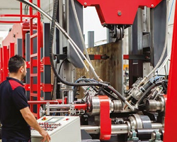 Описание процесса работы: Машина находится в режиме ожидания. Рабочая заготовка перемещается с помощью приводного конвейера. Перемещение Н профиля обеспечивается двигателем с редуктором. На основном корпусе располагается система из двух блоков пневматических горелок. Данные установки двигаются независим друг от друга. Гидравлические цилиндры обеспечивают правильное положение частей Н профиля. Система оснащена гидравлическим поршнем, с помощью которого происходит наклон профиля на 90°.