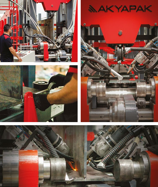 Линия сварки двутавровой балки предназначена для получения высококачественного Н профиля требуемых размеров посредством сварки листов, центрированных на подающей транспортерной группе. AKYAPAK гарантирует быстрый, надежный и качественный результат данной линии.