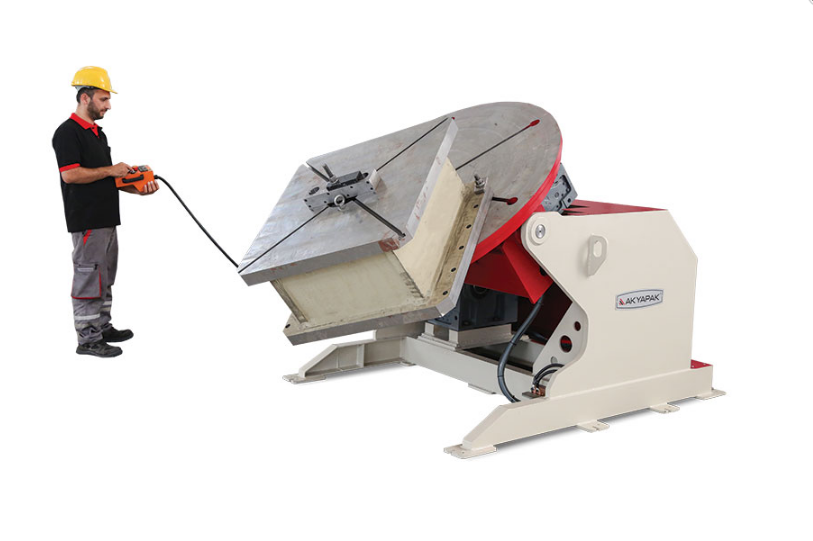 Позиционеры состоят из корпуса, двигателя, системы вращения стола и его наклона, электрической панели и пульта дистанционного управления для оператора и обеспечивает наилучшую безопасность ведения работ. Позиционеры должны быть зафиксированы на полу, для работы с тяжелыми заготовками. Операторы могут точно настроенные заготовки вращать по или против часовой стрелки, что контролируется с помощью панели управления, с легким регулированием скоростей. Стол так же может быть наклонен вперед, чтобы обеспечить необходимый угол. Вращаемый стол можно оснастить стандартными Т-образными пазами. С их помощью производится быстрый зажим заготовки. Поворот и наклон стола производятся с помощью стальной цилиндрической системы передач. Компания AKYAPAK по стандарту производит позиционеры от 1 до 40 тонн. Однако, по запросу клиента могут быть произведены позиционеры до 100 тонн.